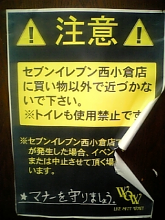 WOWの近くのセブンで、人がたまったりとかして苦情がきてるんだろうけど、店長っぽいおばちゃんそーとーおもしろかったですよ。