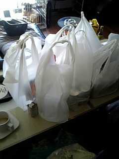 ごらんのとおり、酒と食材の買い出しが終わって