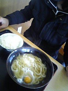 3号線の、人力うどんで昼飯食ッてるんだけど、ここの唐揚げうどんセット…