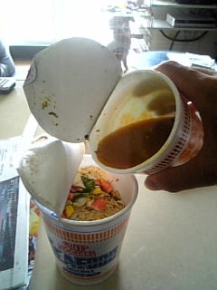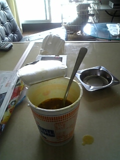 食べ終わったカレーヌードルのスープを
